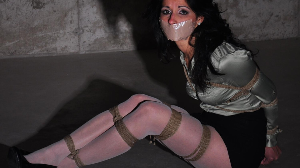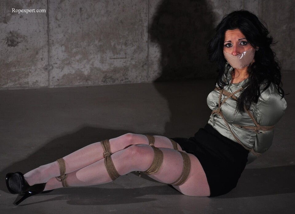 29 images: Secretary bound in her stocking and satin blouse
